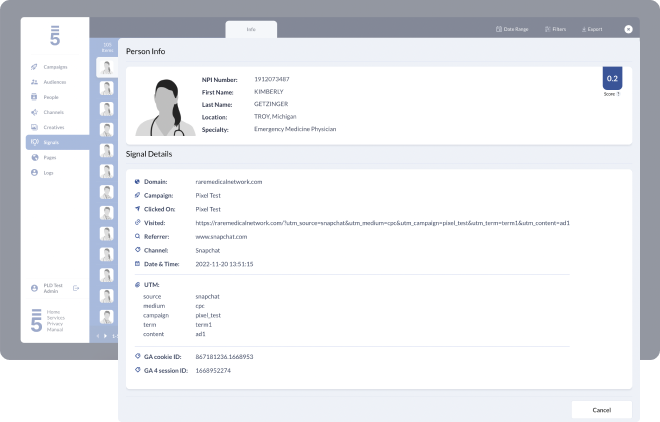 Having Professional, Personal and Household level data allows us to “talk to” and match doctors to their consumer personas on ad networks and channels.